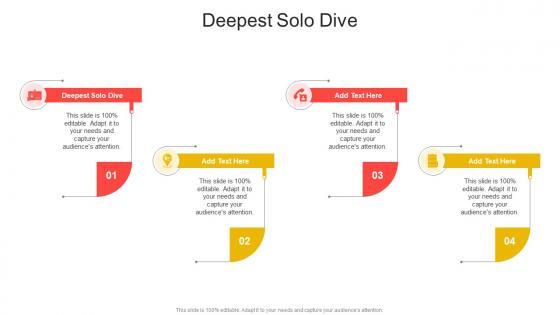 Presenting our innovatively-designed set of slides titled Deepest Solo Dive In Powerpoint And Google Slides Cpb. This completely editable PowerPoint graphic exhibits Deepest Solo Dive that will help you convey the message impactfully. It can be accessed with Google Slides and is available in both standard screen and widescreen aspect ratios. Apart from this, you can download this well-structured PowerPoint template design in different formats like PDF, JPG, and PNG. So, click the download button now to gain full access to this PPT design. Our Deepest Solo Dive In Powerpoint And Google Slides Cpb are topically designed to provide an attractive backdrop to any subject. Use them to look like a presentation pro.