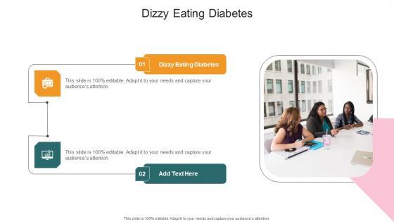 Introducing our well designed Dizzy Eating Diabetes In Powerpoint And Google Slides Cpb This PowerPoint design presents information on topics like Dizzy Eating Diabetes As it is predesigned it helps boost your confidence level. It also makes you a better presenter because of its high quality content and graphics. This PPT layout can be downloaded and used in different formats like PDF, PNG, and JPG. Not only this, it is available in both Standard Screen and Widescreen aspect ratios for your convenience. Therefore, click on the download button now to persuade and impress your audience. Our Dizzy Eating Diabetes In Powerpoint And Google Slides Cpb are topically designed to provide an attractive backdrop to any subject. Use them to look like a presentation pro.