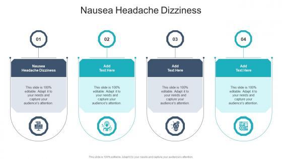 Introducing our well-designed Nausea Headache Dizziness In Powerpoint And Google Slides Cpb. This PowerPoint design presents information on topics like Nausea Headache Dizziness. As it is predesigned it helps boost your confidence level. It also makes you a better presenter because of its high-quality content and graphics. This PPT layout can be downloaded and used in different formats like PDF, PNG, and JPG. Not only this, it is available in both Standard Screen and Widescreen aspect ratios for your convenience. Therefore, click on the download button now to persuade and impress your audience. Our Nausea Headache Dizziness In Powerpoint And Google Slides Cpb are topically designed to provide an attractive backdrop to any subject. Use them to look like a presentation pro.