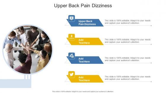 Introducing our well designed Upper Back Pain Dizziness In Powerpoint And Google Slides Cpb. This PowerPoint design presents information on topics like Upper Back Pain Dizziness. As it is predesigned it helps boost your confidence level. It also makes you a better presenter because of its high-quality content and graphics. This PPT layout can be downloaded and used in different formats like PDF, PNG, and JPG. Not only this, it is available in both Standard Screen and Widescreen aspect ratios for your convenience. Therefore, click on the download button now to persuade and impress your audience. Our Upper Back Pain Dizziness In Powerpoint And Google Slides Cpb are topically designed to provide an attractive backdrop to any subject. Use them to look like a presentation pro.