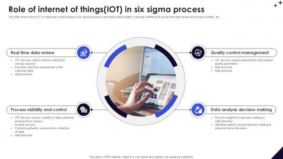 This slide shows role of IOT in improving overall process of six sigma process by providing useful insights. It include benefits such as real time data review and process visibility, etc. Slidegeeks has constructed Role Of Internet Of Things IOT In DMAIC Methodology To Maintain PPT Example after conducting extensive research and examination. These presentation templates are constantly being generated and modified based on user preferences and critiques from editors. Here, you will find the most attractive templates for a range of purposes while taking into account ratings and remarks from users regarding the content. This is an excellent jumping-off point to explore our content and will give new users an insight into our top-notch PowerPoint Templates. This slide shows role of IOT in improving overall process of six sigma process by providing useful insights. It include benefits such as real time data review and process visibility, etc.