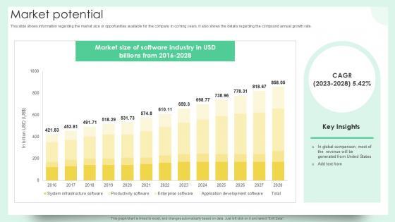 This slide shows information regarding the market size or opportunities available for the company in coming years. It also shows the details regarding the compound annual growth rate. Are you in need of a template that can accommodate all of your creative concepts This one is crafted professionally and can be altered to fit any style. Use it with Google Slides or PowerPoint. Include striking photographs, symbols, depictions, and other visuals. Fill, move around, or remove text boxes as desired. Test out color palettes and font mixtures. Edit and save your work, or work with colleagues. Download Market Potential Document Creation Software Company Fundraising Ppt Powerpoint and observe how to make your presentation outstanding. Give an impeccable presentation to your group and make your presentation unforgettable. This slide shows information regarding the market size or opportunities available for the company in coming years. It also shows the details regarding the compound annual growth rate.