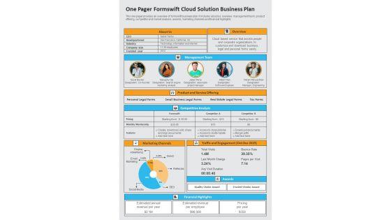 Looking for a predesigned One Pager Formswift Cloud Solution Business Plan PDF Document PPT Template Heres the perfect piece for you It has everything that a well-structured one-pager template should have. Besides, it is 100 percent editable, which offers you the cushion to make adjustments according to your preferences. Grab this One Pager Formswift Cloud Solution Business Plan PDF Document PPT Template Download now. Our One Pager Formswift Cloud Solution Business Plan PDF Document PPT Template are topically designed to provide an attractive backdrop to any subject. Use them to look like a presentation pro.