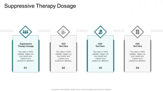 Introducing our well designed Suppressive Therapy Dosage In Powerpoint And Google Slides Cpb. This PowerPoint design presents information on topics like Suppressive Therapy Dosage. As it is predesigned it helps boost your confidence level. It also makes you a better presenter because of its high quality content and graphics. This PPT layout can be downloaded and used in different formats like PDF, PNG, and JPG. Not only this, it is available in both Standard Screen and Widescreen aspect ratios for your convenience. Therefore, click on the download button now to persuade and impress your audience. Our Suppressive Therapy Dosage In Powerpoint And Google Slides Cpb are topically designed to provide an attractive backdrop to any subject. Use them to look like a presentation pro.