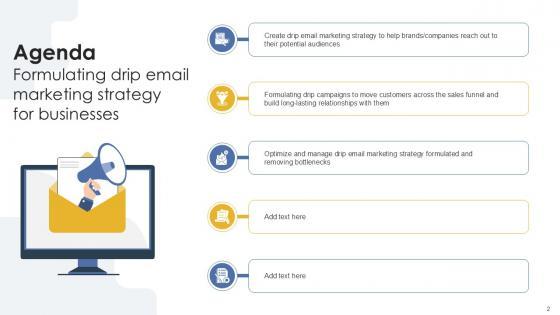 Find a pre-designed and impeccable Agenda Formulating Drip Email Marketing PPT Slide MKT SS V. The templates can ace your presentation without additional effort. You can download these easy-to-edit presentation templates to make your presentation stand out from others. So, what are you waiting for Download the template from Slidegeeks today and give a unique touch to your presentation. Our Agenda Formulating Drip Email Marketing PPT Slide MKT SS V are topically designed to provide an attractive backdrop to any subject. Use them to look like a presentation pro.