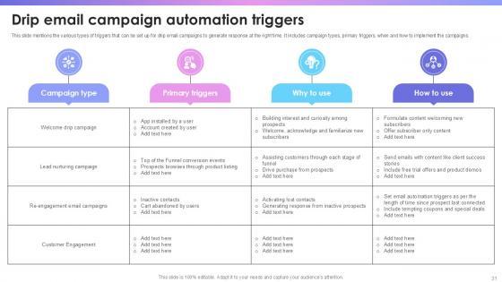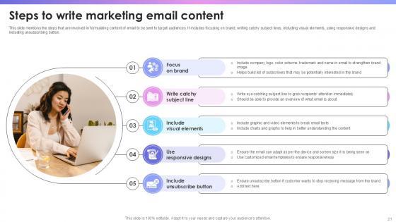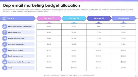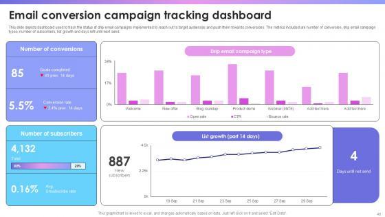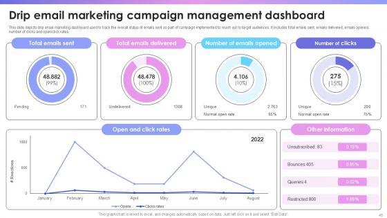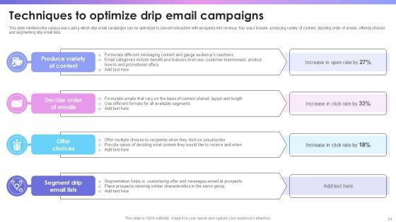 Use this Formulating Drip Email Marketing Strategy For Target Audiences Ppt Sample MKT CD V to ensure the business world gets to know you as a presentation expert with tremendous recall value. With its focus on providing the worlds best designs to highlight business ideas that have the potential to change the world, this PPT Template is sure to win you clients. The complete deck in fifty five slides is a compendium of information, structured in a manner that provides the best framework for a presentation. Use this completely editable and customizable presentation to make an impact and improve your order book. Download now. Our Formulating Drip Email Marketing Strategy For Target Audiences Ppt Sample MKT CD V are topically designed to provide an attractive backdrop to any subject. Use them to look like a presentation pro.