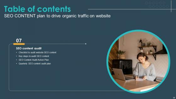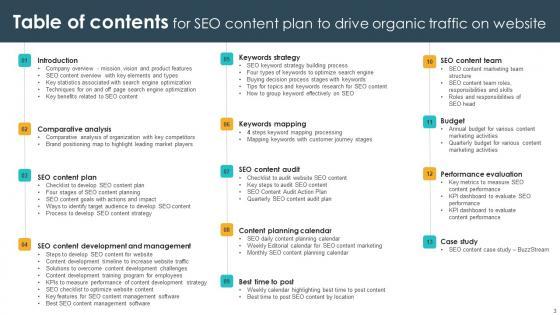 Get a simple yet stunning designed Table Of Contents For Seo Content Plan To Drive Organic Traffic On Website Strategy SS V It is the best one to establish the tone in your meetings. It is an excellent way to make your presentations highly effective. So, download this PPT today from Slidegeeks and see the positive impacts. Our easy-to-edit Table Of Contents For Seo Content Plan To Drive Organic Traffic On Website Strategy SS V can be your go-to option for all upcoming conferences and meetings. So, what are you waiting for Grab this template today. Our Table Of Contents For Seo Content Plan To Drive Organic Traffic On Website Strategy SS V are topically designed to provide an attractive backdrop to any subject. Use them to look like a presentation pro.
