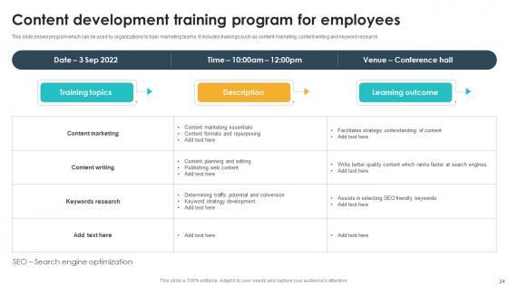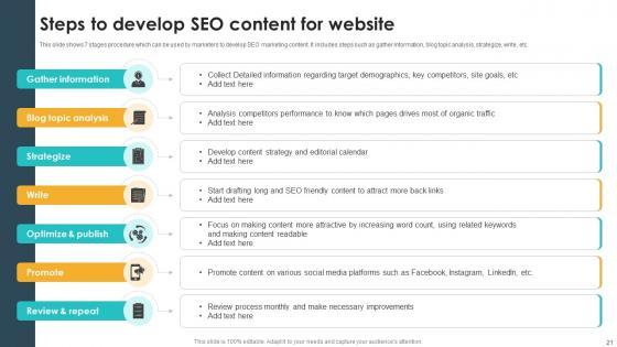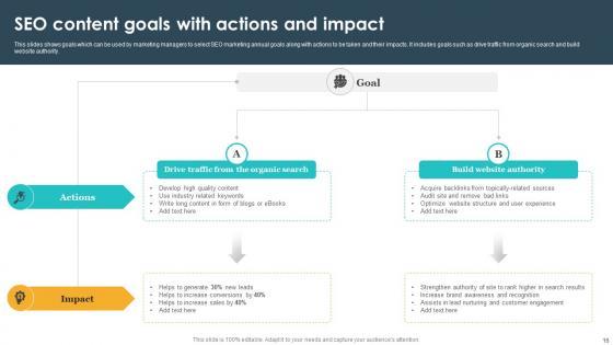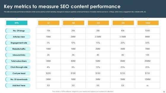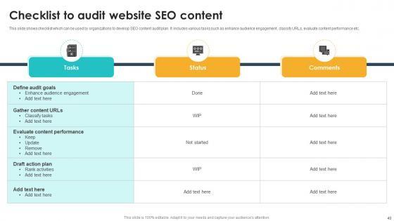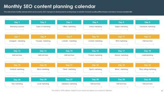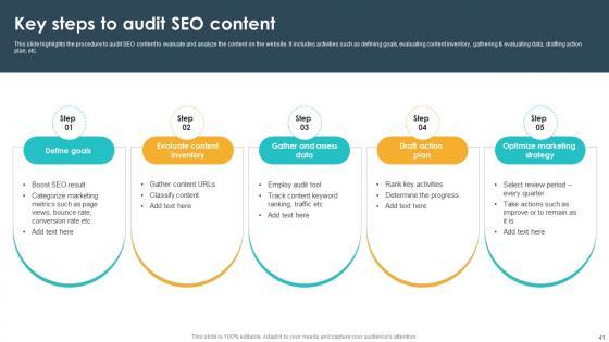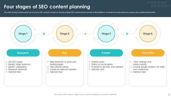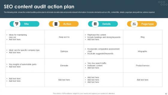 This Seventy Two slide SEO Content Plan To Drive Organic Traffic On Website Complete Deck Strategy CD is your content ready tool to impress the stakeholders with your business planning and its manner of execution. Showcase your ideas and how you plan to make them real in detail with this PPT Template Bundle. The slides have the conceptual bandwidth to present the crucial aspects of your plan, such as funding, marketing, resource allocation, timeline, roadmap, and more. When you present your plans with this PPT Layout, the stakeholders are sure to come on board because you will be able to present a succinct, thought-out, winning project. Download this Complete Deck now to take control into your hands. The 100 percent customizable offer is just too good to be resisted. Our SEO Content Plan To Drive Organic Traffic On Website Complete Deck Strategy CD are topically designed to provide an attractive backdrop to any subject. Use them to look like a presentation pro.