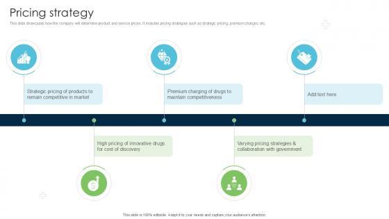 This slide showcases how the company will determine product and service prices. It includes pricing strategies such as strategic pricing, premium charges, etc. Retrieve professionally designed Pricing Strategy Strategies Driving Business Triumph Through Pfizer PPT Slide BMC SS V to effectively convey your message and captivate your listeners. Save time by selecting pre-made slideshows that are appropriate for various topics, from business to educational purposes. These themes come in many different styles, from creative to corporate, and all of them are easily adjustable and can be edited quickly. Access them as PowerPoint templates or as Google Slides themes. You do not have to go on a hunt for the perfect presentation because Slidegeeks got you covered from everywhere. This slide showcases how the company will determine product and service prices. It includes pricing strategies such as strategic pricing, premium charges, etc.