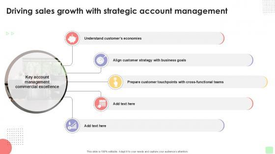 Dont compromise on a template that erodes your messages impact. Introducing our engaging Driving Sales Growth With Strategic Detailed Business Account PPT Example Strategy SS V complete deck, thoughtfully crafted to grab your audiences attention instantly. With this deck, effortlessly download and adjust elements, streamlining the customization process. Whether youre using Microsoft versions or Google Slides, it fits seamlessly into your workflow. Furthermore, its accessible in JPG, JPEG, PNG, and PDF formats, facilitating easy sharing and editing. Not only that you also play with the color theme of your slides making it suitable as per your audiences preference. Our Driving Sales Growth With Strategic Detailed Business Account PPT Example Strategy SS V are topically designed to provide an attractive backdrop to any subject. Use them to look like a presentation pro.