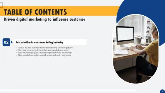 This sixty slide Driven Digital Marketing To Influence Customer Ppt PowerPoint Presentation Complete Deck With Slides is your content ready tool to impress the stakeholders with your business planning and its manner of execution. Showcase your ideas and how you plan to make them real in detail with this PPT Template Bundle. The slides have the conceptual bandwidth to present the crucial aspects of your plan, such as funding, marketing, resource allocation, timeline, roadmap, and more. When you present your plans with this PPT Layout, the stakeholders are sure to come on board because you will be able to present a succinct, thought-out, winning project. Download this Complete Deck now to take control into your hands. The 100 percent customizable offer is just too good to be resisted. Our Driven Digital Marketing To Influence Customer Ppt PowerPoint Presentation Complete Deck With Slides are topically designed to provide an attractive backdrop to any subject. Use them to look like a presentation pro.