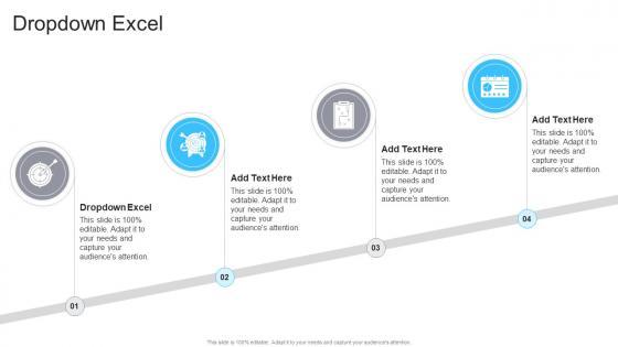 Introducing our well-designed Dropdown Excel In Powerpoint And Google Slides Cpb. This PowerPoint design presents information on topics like Dropdown Excel. As it is predesigned it helps boost your confidence level. It also makes you a better presenter because of its high-quality content and graphics. This PPT layout can be downloaded and used in different formats like PDF, PNG, and JPG. Not only this, it is available in both Standard Screen and Widescreen aspect ratios for your convenience. Therefore, click on the download button now to persuade and impress your audience. Our Dropdown Excel In Powerpoint And Google Slides Cpb are topically designed to provide an attractive backdrop to any subject. Use them to look like a presentation pro.