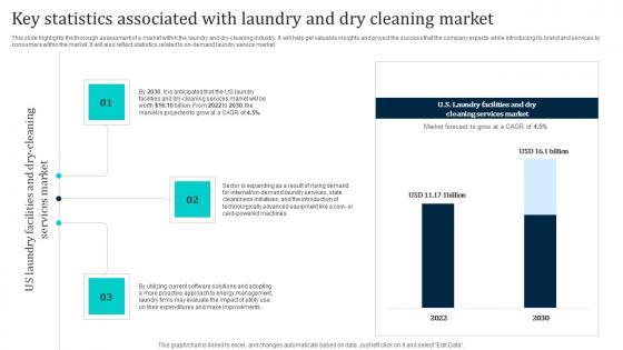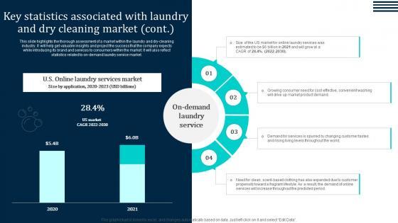 This slide highlights the thorough assessment of a market within the laundry and dry-cleaning industry. It will help get valuable insights and project the success that the company expects while introducing its brand and services to consumers within the market. It will also reflect statistics related to on-demand laundry service market.This Key Statistics Associated With Laundry And Dry Laundromat Business Plan Go To Market Icons Pdf is perfect for any presentation, be it in front of clients or colleagues. It is a versatile and stylish solution for organizing your meetings. The product name features a modern design for your presentation meetings. The adjustable and customizable slides provide unlimited possibilities for acing up your presentation. Slidegeeks has done all the homework before launching the product for you. So, do not wait, grab the presentation templates today This slide highlights the thorough assessment of a market within the laundry and dry cleaning industry. It will help get valuable insights and project the success that the company expects while introducing its brand and services to consumers within the market. It will also reflect statistics related to on demand laundry service market.