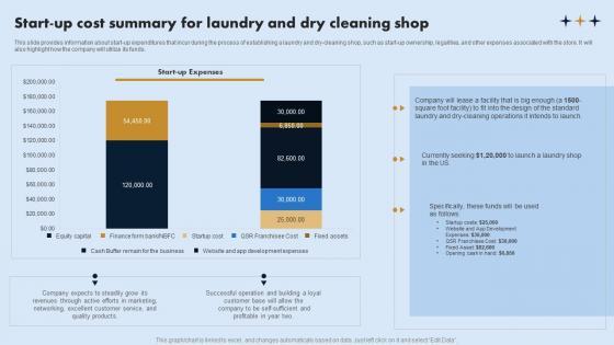 Are you in need of a template that can accommodate all of your creative concepts This one is crafted professionally and can be altered to fit any style. Use it with Google Slides or PowerPoint. Include striking photographs, symbols, depictions, and other visuals. Fill, move around, or remove text boxes as desired. Test out color palettes and font mixtures. Edit and save your work, or work with colleagues. Download Start Up Cost Summary For Laundry And Dry Cleaning Shop On Demand Laundry Business Plan Mockup Pdf and observe how to make your presentation outstanding. Give an impeccable presentation to your group and make your presentation unforgettable. This slide provides information about start up expenditures that incur during the process of establishing a laundry and dry cleaning shop, such as start up ownership, legalities, and other expenses associated with the store. It will also highlight how the company will utilize its funds.