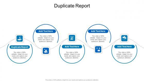 Introducing our well designed Duplicate Report In Powerpoint And Google Slides Cpb. This PowerPoint design presents information on topics like Duplicate Report. As it is predesigned it helps boost your confidence level. It also makes you a better presenter because of its high quality content and graphics. This PPT layout can be downloaded and used in different formats like PDF, PNG, and JPG. Not only this, it is available in both Standard Screen and Widescreen aspect ratios for your convenience. Therefore, click on the download button now to persuade and impress your audience. Our Duplicate Report In Powerpoint And Google Slides Cpb are topically designed to provide an attractive backdrop to any subject. Use them to look like a presentation pro.
