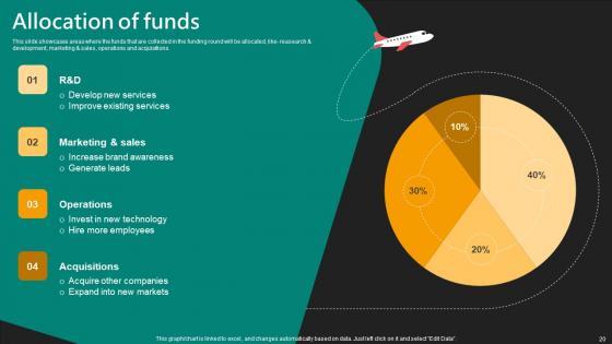 This slide showcases areas where the funds that are collected in the funding round will be allocated, like reasearch and development, marketing and sales, operations and acquisitions. Find a pre-designed and impeccable Allocation Of Funds E Commerce Logistics Management Funding Pitch Deck Graphics Pdf. The templates can ace your presentation without additional effort. You can download these easy-to-edit presentation templates to make your presentation stand out from others. So, what are you waiting for Download the template from Slidegeeks today and give a unique touch to your presentation. This slide showcases areas where the funds that are collected in the funding round will be allocated, like reasearch and development, marketing and sales, operations and acquisitions.