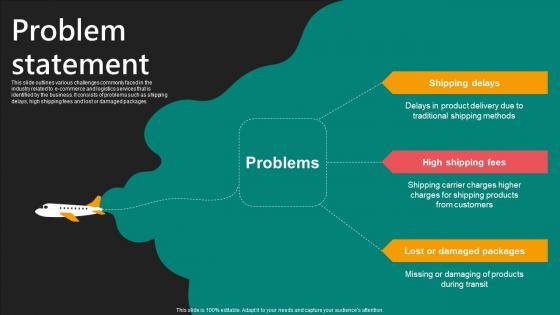 This slide outlines various challenges commonly faced in the industry related to e-commerce and logistics services that is identified by the business. It consists of problems such as shipping delays, high shipping fees and lost or damaged packages. Make sure to capture your audiences attention in your business displays with our gratis customizable Problem Statement E Commerce Logistics Management Funding Pitch Deck Template Pdf. These are great for business strategies, office conferences, capital raising or task suggestions. If you desire to acquire more customers for your tech business and ensure they stay satisfied, create your own sales presentation with these plain slides. This slide outlines various challenges commonly faced in the industry related to e-commerce and logistics services that is identified by the business. It consists of problems such as shipping delays, high shipping fees and lost or damaged packages.