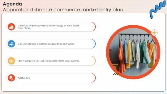 Find a pre-designed and impeccable Agenda Apparel And Shoes E Commerce Market Entry Plan PPT Example GTM SS V. The templates can ace your presentation without additional effort. You can download these easy-to-edit presentation templates to make your presentation stand out from others. So, what are you waiting for Download the template from Slidegeeks today and give a unique touch to your presentation. Our Agenda Apparel And Shoes E Commerce Market Entry Plan PPT Example GTM SS V are topically designed to provide an attractive backdrop to any subject. Use them to look like a presentation pro.