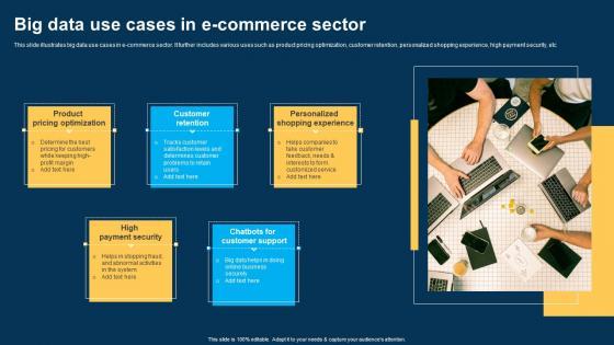 This slide illustrates big data use cases in e-commerce sector. It further includes various uses such as product pricing optimization, customer retention, personalized shopping experience, high payment security, etc. Pitch your topic with ease and precision using this Big Data Use Cases In E Commerce Sector Ppt Show Clipart Images pdf. This layout presents information on Customer Retention, Personalized Shopping Experience, High Payment Security. It is also available for immediate download and adjustment. So, changes can be made in the color, design, graphics or any other component to create a unique layout. This slide illustrates big data use cases in e-commerce sector. It further includes various uses such as product pricing optimization, customer retention, personalized shopping experience, high payment security, etc.