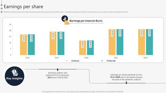 Mentioned slide provides information about company earnings per share over the years. It includes earnings per share by share types such as ordinary shares and preferred shares.Slidegeeks is here to make your presentations a breeze with Earnings Per Share Automotive Manufacturing Company Profile CP SS V With our easy-to-use and customizable templates, you can focus on delivering your ideas rather than worrying about formatting. With a variety of designs to choose from, you are sure to find one that suits your needs. And with animations and unique photos, illustrations, and fonts, you can make your presentation pop. So whether you are giving a sales pitch or presenting to the board, make sure to check out Slidegeeks first Mentioned slide provides information about company earnings per share over the years. It includes earnings per share by share types such as ordinary shares and preferred shares.