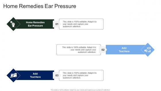Introducing our well designed Home Remedies Ear Pressure In Powerpoint And Google Slides Cpb. This PowerPoint design presents information on topics like Home Remedies Ear Pressure. As it is predesigned it helps boost your confidence level. It also makes you a better presenter because of its high-quality content and graphics. This PPT layout can be downloaded and used in different formats like PDF, PNG, and JPG. Not only this, it is available in both Standard Screen and Widescreen aspect ratios for your convenience. Therefore, click on the download button now to persuade and impress your audience. Our Home Remedies Ear Pressure In Powerpoint And Google Slides Cpb are topically designed to provide an attractive backdrop to any subject. Use them to look like a presentation pro.
