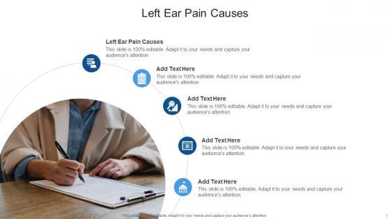 Introducing our well designed Left Ear Pain Causes In Powerpoint And Google Slides Cpb. This PowerPoint design presents information on topics like Left Ear Pain Causes. As it is predesigned it helps boost your confidence level. It also makes you a better presenter because of its high quality content and graphics. This PPT layout can be downloaded and used in different formats like PDF, PNG, and JPG. Not only this, it is available in both Standard Screen and Widescreen aspect ratios for your convenience. Therefore, click on the download button now to persuade and impress your audience. Our Left Ear Pain Causes In Powerpoint And Google Slides Cpb are topically designed to provide an attractive backdrop to any subject. Use them to look like a presentation pro.