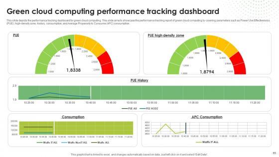 This slide depicts the performance tracking dashboard for green cloud computing. This slide aims to showcase the performance tracking report of green cloud computing by covering parameters such as Power Use Effectiveness PUE, high-density zone, history, consumption, and Average Propensity to Consume APC consumption.If you are looking for a format to display your unique thoughts, then the professionally designed Green Cloud Computing Performance Tracking Dashboard Eco Friendly Computing IT is the one for you. You can use it as a Google Slides template or a PowerPoint template. Incorporate impressive visuals, symbols, images, and other charts. Modify or reorganize the text boxes as you desire. Experiment with shade schemes and font pairings. Alter, share or cooperate with other people on your work. Download Green Cloud Computing Performance Tracking Dashboard Eco Friendly Computing IT and find out how to give a successful presentation. Present a perfect display to your team and make your presentation unforgettable. This slide depicts the performance tracking dashboard for green cloud computing. This slide aims to showcase the performance tracking report of green cloud computing by covering parameters such as Power Use Effectiveness ,PUE, high-density zone, history, consumption, and Average Propensity to Consume ,APC consumption.