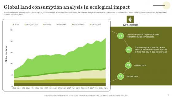 This slide highlights an analysis of land consumption globally in ecological footprints to estimate production of certain biological materials. It includes various components like carbon, fishing grounds, cropland, build up land, forest products and grazing land. Showcasing this set of slides titled Global Land Consumption Analysis In Ecological Impact Clipart Pdf The topics addressed in these templates are Global Land, Consumption Analysis, Ecological Impact All the content presented in this PPT design is completely editable. Download it and make adjustments in color, background, font etc. as per your unique business setting. This slide highlights an analysis of land consumption globally in ecological footprints to estimate production of certain biological materials. It includes various components like carbon, fishing grounds, cropland, build up land, forest products and grazing land.