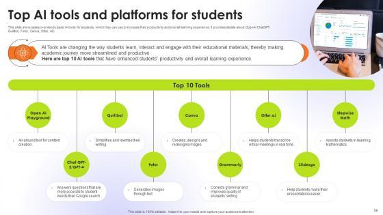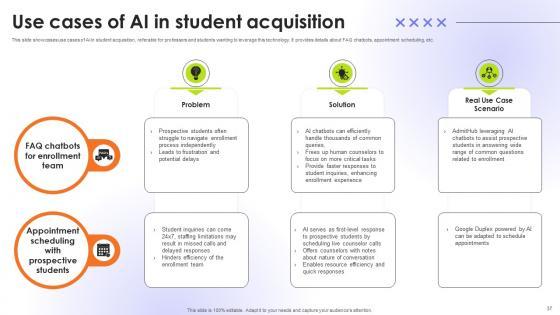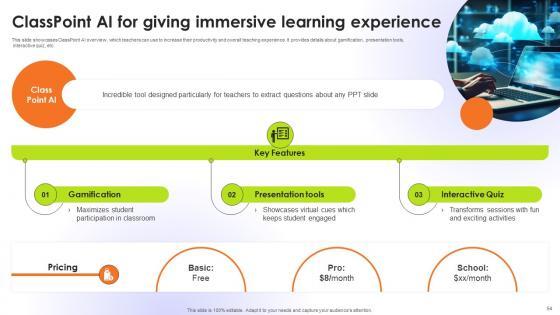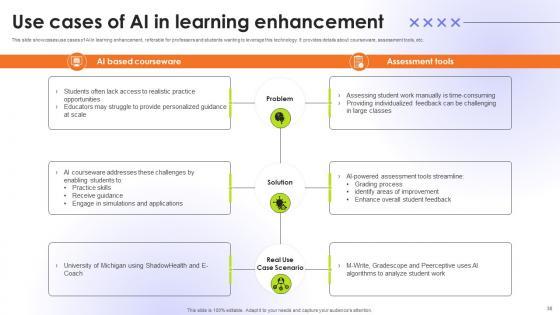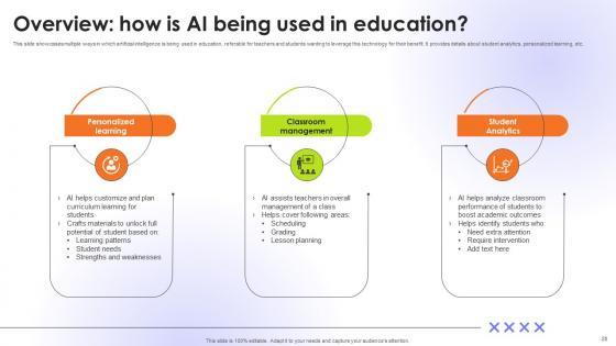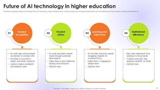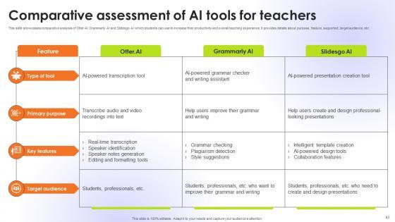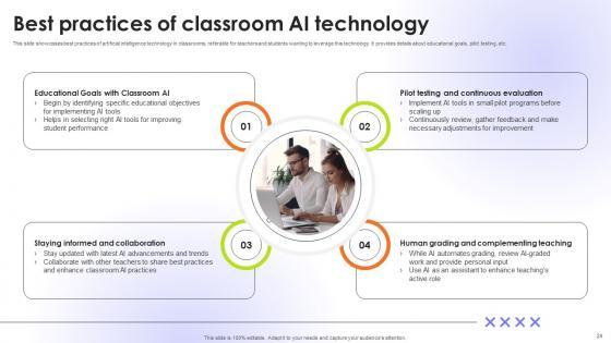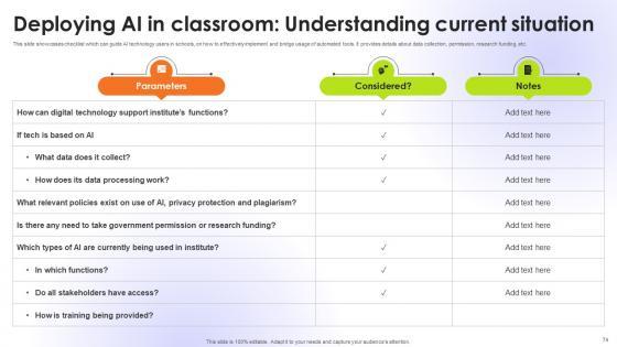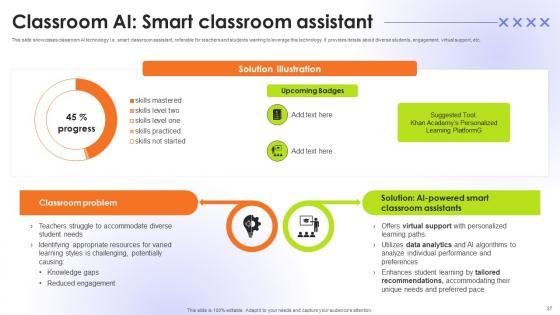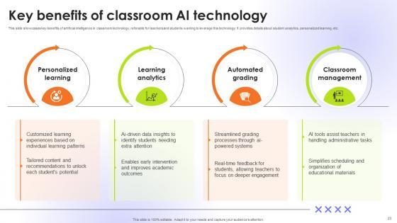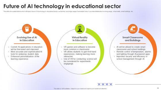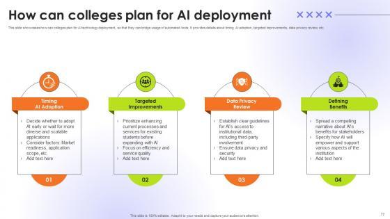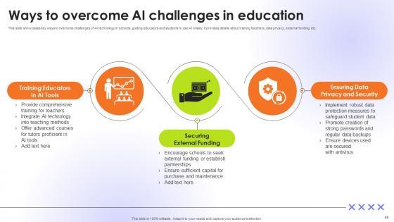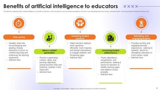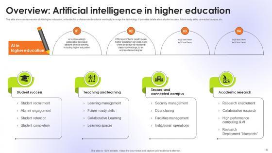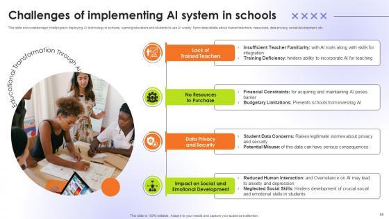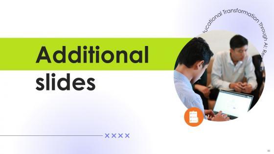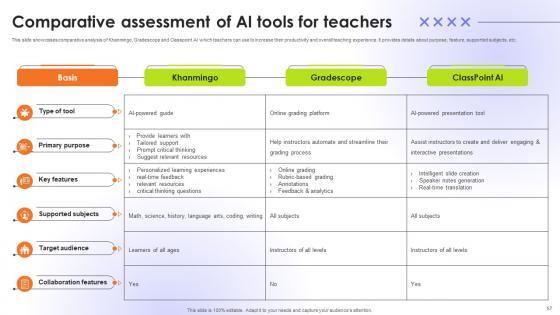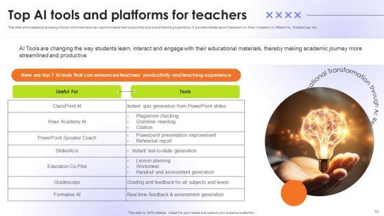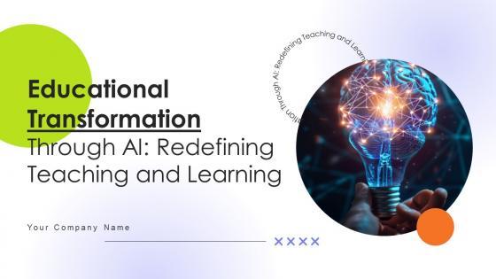 This Educational Transformation Through AI Redefining Teaching And Learning AI CD V is a primer on how to capitalize on business opportunities through planning, innovation, and market intelligence. The content-ready format of the complete deck will make your job as a decision-maker a lot easier. Use this ready-made PowerPoint Template to help you outline an extensive and legible plan to capture markets and grow your company on the right path, at an exponential pace. What is even more amazing is that this presentation is completely editable and 100 percent customizable. This eighty eight slide complete deck helps you impress a roomful of people with your expertise in business and even presentation. Craft such a professional and appealing presentation for that amazing recall value. Download now. Our Educational Transformation Through AI Redefining Teaching And Learning AI CD V are topically designed to provide an attractive backdrop to any subject. Use them to look like a presentation pro.
