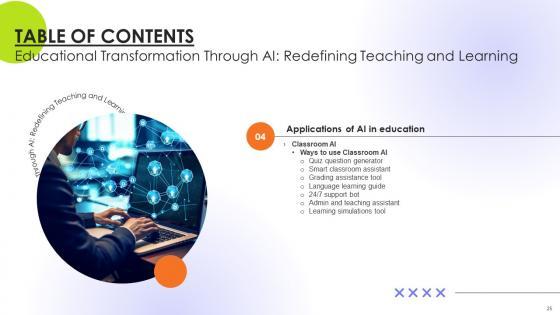 Table Of Contents For Educational Transformation Through AI Redefining Teaching And Learning AI SS V