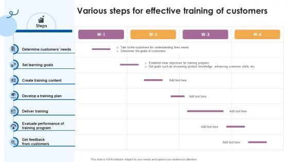 There are so many reasons you need a Various Steps For Effective Training Of Customers Customer Service Training Ppt Sample The first reason is you can not spend time making everything from scratch, Thus, Slidegeeks has made presentation templates for you too. You can easily download these templates from our website easily. Our Various Steps For Effective Training Of Customers Customer Service Training Ppt Sample are topically designed to provide an attractive backdrop to any subject. Use them to look like a presentation pro.