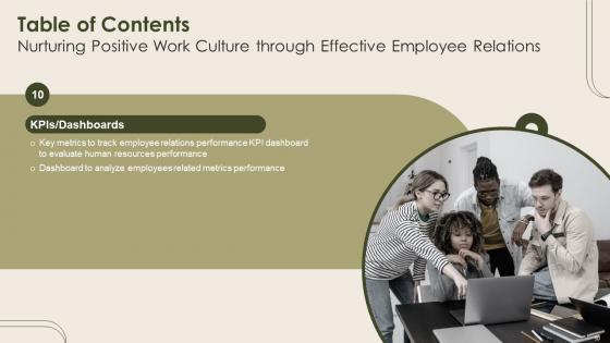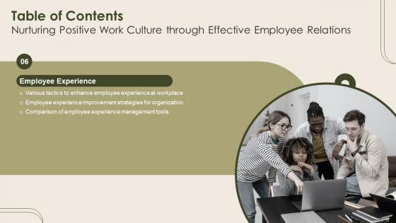 Do you know about Slidesgeeks Table Of Contents Nurturing Positive Work Culture Through Effective Employee Relations Diagrams Pdf These are perfect for delivering any kind od presentation. Using it, create PowerPoint presentations that communicate your ideas and engage audiences. Save time and effort by using our pre-designed presentation templates that are perfect for a wide range of topic. Our vast selection of designs covers a range of styles, from creative to business, and are all highly customizable and easy to edit. Download as a PowerPoint template or use them as Google Slides themes. Our Table Of Contents Nurturing Positive Work Culture Through Effective Employee Relations Diagrams Pdf are topically designed to provide an attractive backdrop to any subject. Use them to look like a presentation pro.