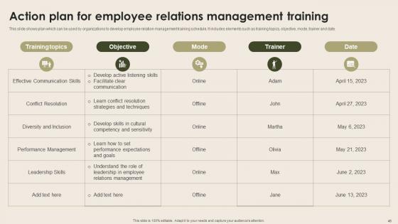 You will save yourself your energy and hours of time when you choose to use this impactful PowerPoint Deck. This Nurturing Positive Work Culture Through Effective Employee Relations Complete Deck has been tailor-made to your business needs which ensures that you will always be prepared for that next meeting. Worry can not touch you when you present in your area of expertise using this PPT Template Bundle. With a modern design and easy to follow structure, this PowerPoint Presentation has sixty sevevn slides, which ensures that you can cover you need to without much work. Create your next presentation using this PPT Theme to deliver a memorable performance. Our Nurturing Positive Work Culture Through Effective Employee Relations Complete Deck are topically designed to provide an attractive backdrop to any subject. Use them to look like a presentation pro.