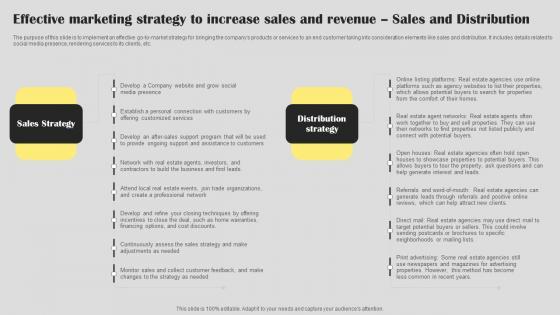 The purpose of this slide is to implement an effective go to market strategy for bringing the companys products or services to an end customer taking into consideration elements like sales and distribution. It includes details related to social media presence, rendering services to its clients, etc. Retrieve professionally designed Real Estate Agent Business Plan Go To Market Strategy Effective Marketing Strategy Inspiration Pdf to effectively convey your message and captivate your listeners. Save time by selecting pre made slideshows that are appropriate for various topics, from business to educational purposes. These themes come in many different styles, from creative to corporate, and all of them are easily adjustable and can be edited quickly. Access them as PowerPoint templates or as Google Slides themes. You do not have to go on a hunt for the perfect presentation because Slidegeeks got you covered from everywhere. The purpose of this slide is to implement an effective go to market strategy for bringing the companys products or services to an end customer taking into consideration elements like sales and distribution. It includes details related to social media presence, rendering services to its clients, etc.