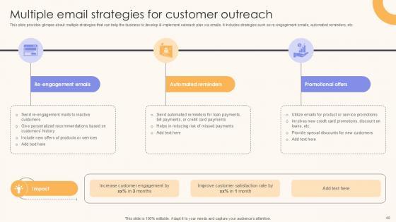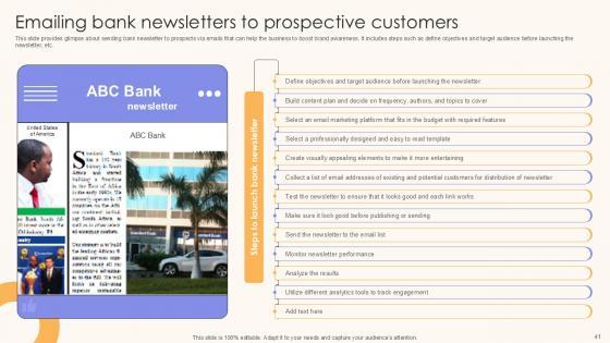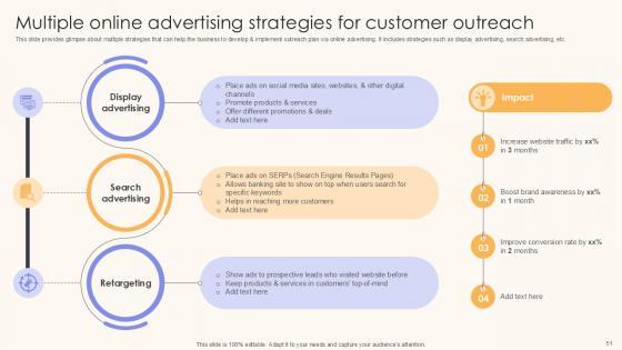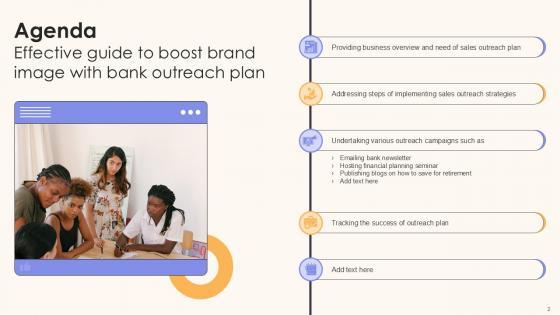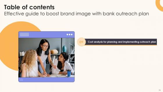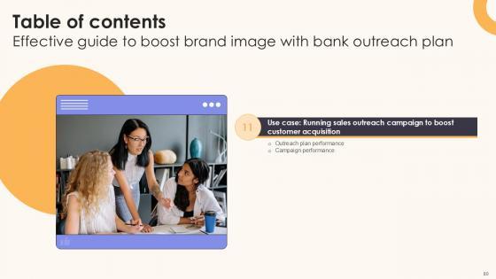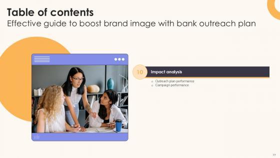 This Effective Guide To Boost Brand Image With Bank Outreach Plan Ppt Slide Strategy CD V is designed to help you retain your audiences attention. This content-ready PowerPoint Template enables you to take your audience on a journey and share information in a way that is easier to recall. It helps you highlight the crucial parts of your work so that the audience does not get saddled with information download. This eighty six-slide PPT Deck comes prepared with the graphs and charts you could need to showcase your information through visuals. You only need to enter your own data in them. Download this editable PowerPoint Theme and walk into that meeting with confidence. Our Effective Guide To Boost Brand Image With Bank Outreach Plan Ppt Slide Strategy CD V are topically designed to provide an attractive backdrop to any subject. Use them to look like a presentation pro.