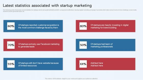 The following slide showcases current statistics for startups which will assist both B2B and B2C companies to effectively develop digital marketing campaign. It provides information about most common challenge, social media channel used to generate leads, etc. This Latest Statistics Associated With Startup Marketing Effective Startup Promotion Plan Download Pdf is perfect for any presentation, be it in front of clients or colleagues. It is a versatile and stylish solution for organizing your meetings. The Latest Statistics Associated With Startup Marketing Effective Startup Promotion Plan Download Pdf features a modern design for your presentation meetings. The adjustable and customizable slides provide unlimited possibilities for acing up your presentation. Slidegeeks has done all the homework before launching the product for you. So, do not wait, grab the presentation templates today. The following slide showcases current statistics for startups which will assist both B2B and B2C companies to effectively develop digital marketing campaign. It provides information about most common challenge, social media channel used to generate leads, etc.