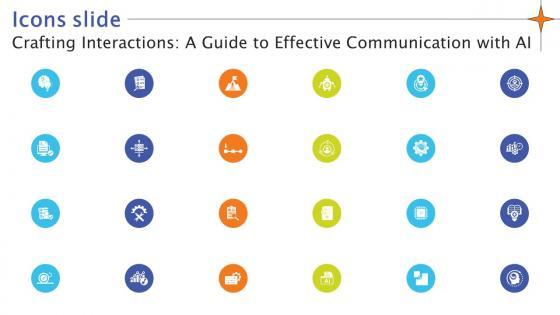 Download our innovative and attention grabbing Icons Slide Crafting Interactions A Guide To Effective Communication With AI SS V template. The set of slides exhibit completely customizable icons. These icons can be incorporated into any business presentation. So download it immediately to clearly communicate with your clientele. Our Icons Slide Crafting Interactions A Guide To Effective Communication With AI SS V are topically designed to provide an attractive backdrop to any subject. Use them to look like a presentation pro.