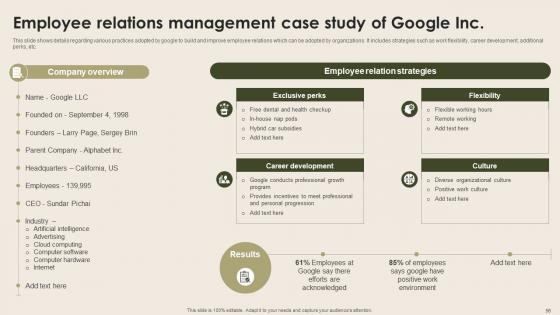 You will save yourself your energy and hours of time when you choose to use this impactful PowerPoint Deck. This Nurturing Positive Work Culture Through Effective Employee Relations Complete Deck has been tailor-made to your business needs which ensures that you will always be prepared for that next meeting. Worry can not touch you when you present in your area of expertise using this PPT Template Bundle. With a modern design and easy to follow structure, this PowerPoint Presentation has sixty sevevn slides, which ensures that you can cover you need to without much work. Create your next presentation using this PPT Theme to deliver a memorable performance. Our Nurturing Positive Work Culture Through Effective Employee Relations Complete Deck are topically designed to provide an attractive backdrop to any subject. Use them to look like a presentation pro.