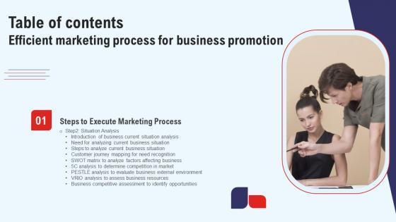 Do you have to make sure that everyone on your team knows about any specific topic I yes, then you should give Efficient Marketing Process For Business Promotion For Table Of Contents Sample Pdf a try. Our experts have put a lot of knowledge and effort into creating this impeccable Efficient Marketing Process For Business Promotion For Table Of Contents Sample Pdf. You can use this template for your upcoming presentations, as the slides are perfect to represent even the tiniest detail. You can download these templates from the Slidegeeks website and these are easy to edit. So grab these today. Our Efficient Marketing Process For Business Promotion For Table Of Contents Sample Pdf are topically designed to provide an attractive backdrop to any subject. Use them to look like a presentation pro.