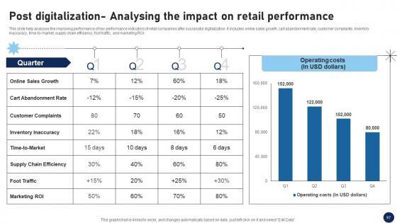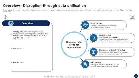 This one hunderd three-slide Driving Growth And Efficiency In Retail Through Digital Transformation DT CD V is your content ready tool to impress the stakeholders with your business planning and its manner of execution. Showcase your ideas and how you plan to make them real in detail with this PPT Template Bundle. The slides have the conceptual bandwidth to present the crucial aspects of your plan, such as funding, marketing, resource allocation, timeline, roadmap, and more. When you present your plans with this PPT Layout, the stakeholders are sure to come on board because you will be able to present a succinct, thought-out, winning project. Download this Complete Deck now to take control into your hands. The 100 percent customizable offer is just too good to be resisted. Our Driving Growth And Efficiency In Retail Through Digital Transformation DT CD V are topically designed to provide an attractive backdrop to any subject. Use them to look like a presentation pro.