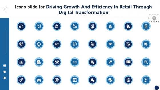 Introducing our well designed Icons Slide For Driving Growth And Efficiency In Retail Through Digital Transformation set of slides. The slide displays editable icons to enhance your visual presentation. The icons can be edited easily. So customize according to your business to achieve a creative edge. Download and share it with your audience. Our Icons Slide For Driving Growth And Efficiency In Retail Through Digital Transformation are topically designed to provide an attractive backdrop to any subject. Use them to look like a presentation pro.