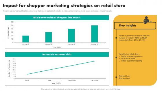 This slide represents impact for shopper marketing strategies on retail store. It includes rise in conversion for shoppers into buyers and increase of customer visits. Are you in need of a template that can accommodate all of your creative concepts This one is crafted professionally and can be altered to fit any style. Use it with Google Slides or PowerPoint. Include striking photographs, symbols, depictions, and other visuals. Fill, move around, or remove text boxes as desired. Test out color palettes and font mixtures. Edit and save your work, or work with colleagues. Download Impact For Shopper Marketing Efficient Shopper Marketing Process For Enhancing Mockup Pdf and observe how to make your presentation outstanding. Give an impeccable presentation to your group and make your presentation unforgettable. This slide represents impact for shopper marketing strategies on retail store. It includes rise in conversion for shoppers into buyers and increase of customer visits.