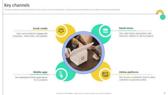 This slide showcases the various points through which the company connects with its customers. It includes channels such as retail stores, online platforms, mobile apps and social media. From laying roadmaps to briefing everything in detail, our templates are perfect for you. You can set the stage with your presentation slides. All you have to do is download these easy-to-edit and customizable templates. Key Channels Electronic Company Business Model BMC SS V will help you deliver an outstanding performance that everyone would remember and praise you for. Do download this presentation today. This slide showcases the various points through which the company connects with its customers. It includes channels such as retail stores, online platforms, mobile apps and social media.