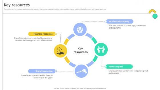 This slide covers the important assets required to operate a business successfully. It includes brand reputation, human capital, intellectual property, and financial resources. Slidegeeks is here to make your presentations a breeze with Key Resources Electronic Company Business Model BMC SS V With our easy-to-use and customizable templates, you can focus on delivering your ideas rather than worrying about formatting. With a variety of designs to choose from, you are sure to find one that suits your needs. And with animations and unique photos, illustrations, and fonts, you can make your presentation pop. So whether you are giving a sales pitch or presenting to the board, make sure to check out Slidegeeks first This slide covers the important assets required to operate a business successfully. It includes brand reputation, human capital, intellectual property, and financial resources.