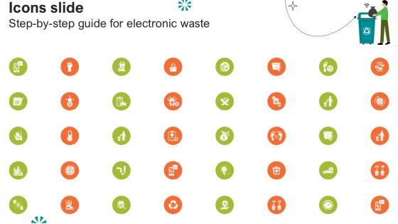 Are you in need of a template that can accommodate all of your creative concepts This one is crafted professionally and can be altered to fit any style. Use it with Google Slides or PowerPoint. Include striking photographs, symbols, depictions, and other visuals. Fill, move around, or remove text boxes as desired. Test out color palettes and font mixtures. Edit and save your work, or work with colleagues. Download Icons Slide Step By Step Guide For Electronic Waste Ppt Sample and observe how to make your presentation outstanding. Give an impeccable presentation to your group and make your presentation unforgettable. Our Icons Slide Step By Step Guide For Electronic Waste Ppt Sample are topically designed to provide an attractive backdrop to any subject. Use them to look like a presentation pro.