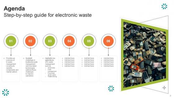 Find a pre-designed and impeccable Agenda Step By Step Guide For Electronic Waste Ppt Template. The templates can ace your presentation without additional effort. You can download these easy-to-edit presentation templates to make your presentation stand out from others. So, what are you waiting for Download the template from Slidegeeks today and give a unique touch to your presentation. Our Agenda Step By Step Guide For Electronic Waste Ppt Template are topically designed to provide an attractive backdrop to any subject. Use them to look like a presentation pro.