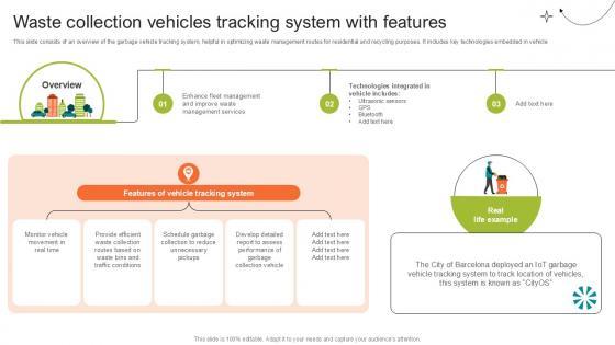 This slide consists of an overview of the garbage vehicle tracking system, helpful in optimizing waste management routes for residential and recycling purposes. It includes key technologies embedded in vehicle Present like a pro with Waste Collection Vehicles Step By Step Guide For Electronic Ppt Sample. Create beautiful presentations together with your team, using our easy-to-use presentation slides. Share your ideas in real-time and make changes on the fly by downloading our templates. So whether you are in the office, on the go, or in a remote location, you can stay in sync with your team and present your ideas with confidence. With Slidegeeks presentation got a whole lot easier. Grab these presentations today. This slide consists of an overview of the garbage vehicle tracking system, helpful in optimizing waste management routes for residential and recycling purposes. It includes key technologies embedded in vehicle