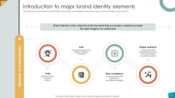This slide covers a brief overview to brand identity. It also includes brand identity elements such as logo, font, style consistency, shape, and form. Are you searching for a Introduction To Major Brand Identity Elements Ideas PDF that is uncluttered, straightforward, and original Its easy to edit, and you can change the colors to suit your personal or business branding. For a presentation that expresses how much effort you have put in, this template is ideal With all of its features, including tables, diagrams, statistics, and lists, its perfect for a business plan presentation. Make your ideas more appealing with these professional slides. Download Introduction To Major Brand Identity Elements Ideas PDF from Slidegeeks today.