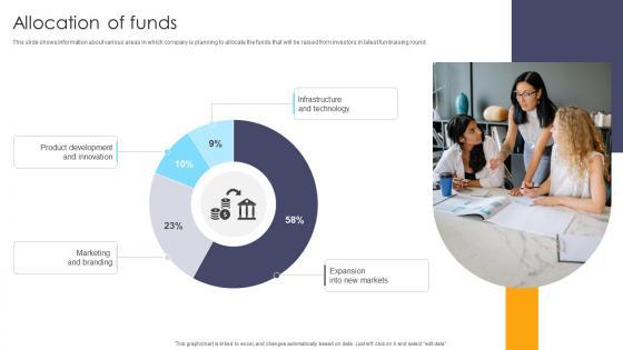 This slide shows information about various areas in which company is planning to allocate the funds that will be raised from investors in latest fundraising round. Find a pre-designed and impeccable Allocation Of Funds Customer Experience Management Company Investor Funding Elevator Pitch Deck. The templates can ace your presentation without additional effort. You can download these easy-to-edit presentation templates to make your presentation stand out from others. So, what are you waiting for Download the template from Slidegeeks today and give a unique touch to your presentation. This slide shows information about various areas in which company is planning to allocate the funds that will be raised from investors in latest fundraising round.