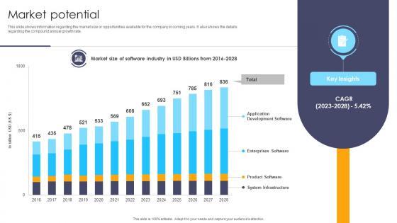 This slide shows information regarding the market size or opportunities available for the company in coming years. It also shows the details regarding the compound annual growth rate. If you are looking for a format to display your unique thoughts, then the professionally designed Market Potential Customer Experience Management Company Investor Funding Elevator Pitch Deck is the one for you. You can use it as a Google Slides template or a PowerPoint template. Incorporate impressive visuals, symbols, images, and other charts. Modify or reorganize the text boxes as you desire. Experiment with shade schemes and font pairings. Alter, share or cooperate with other people on your work. Download Market Potential Customer Experience Management Company Investor Funding Elevator Pitch Deck and find out how to give a successful presentation. Present a perfect display to your team and make your presentation unforgettable. This slide shows information regarding the market size or opportunities available for the company in coming years. It also shows the details regarding the compound annual growth rate.